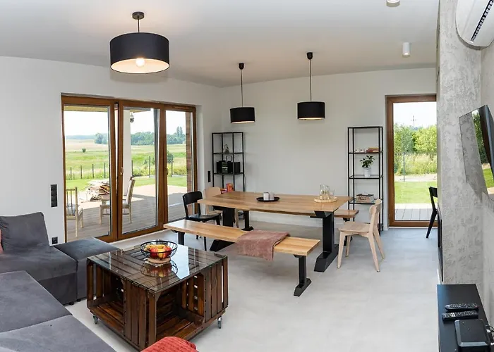 Η Dwa Wiatry με 5 υπνοδωμάτια απέχει λιγότερα από 15 λεπτά με τα πόδια από Trygort Marina. Η Dwa Wiatry προσφέρει δωμάτια εξοπλισμένα με ρύθμιση κλιματισμού, χώρο καθιστικού, σίδερο και σιδερώστρα για την άνεση των επισκεπτών.